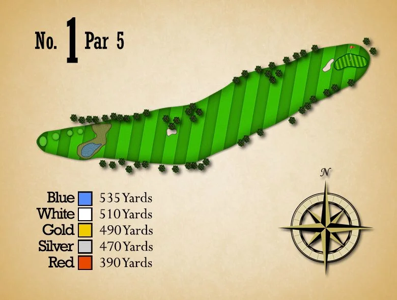 A straight forward Par 5 that plays slightly up hill. Fairway bunkers come into play off the tee. Going for the green in two is rewarded by staying to the right of the green complex. A large greenside bunker, front and right, protects the green.